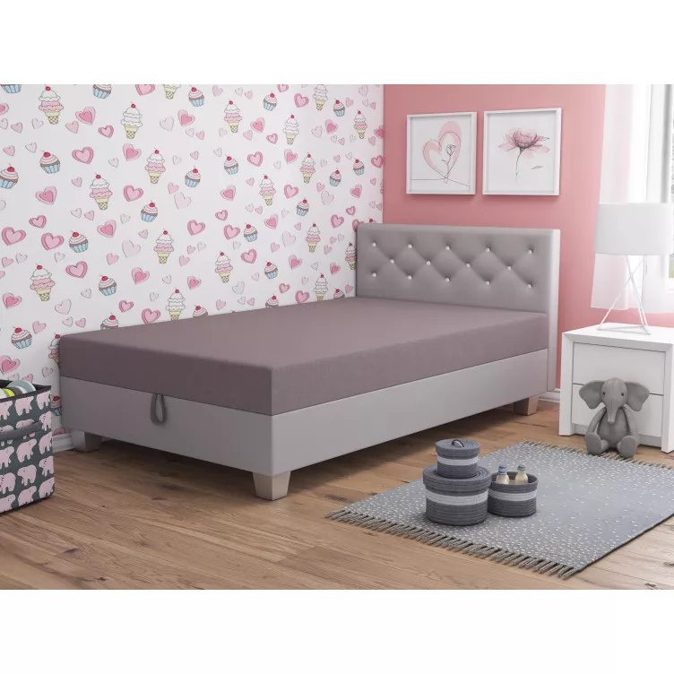 Jednolůžková postel FREDERIKA 1 má jednoduchý, ale elegantní design. Čelo zdobené krystalky chrání stěnu před znečištěním. Postel má úložný prostor pro úschovu ložního prádla.