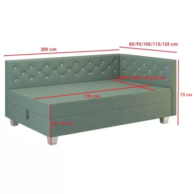 Jednolůžková postel FREDERIKA PLUS 2 má jednoduchý, ale elegantní design. Čelo zdobené krystalky chrání stěnu před znečištěním. Nechybí ani praktický úložný prostor na lůžkoviny.