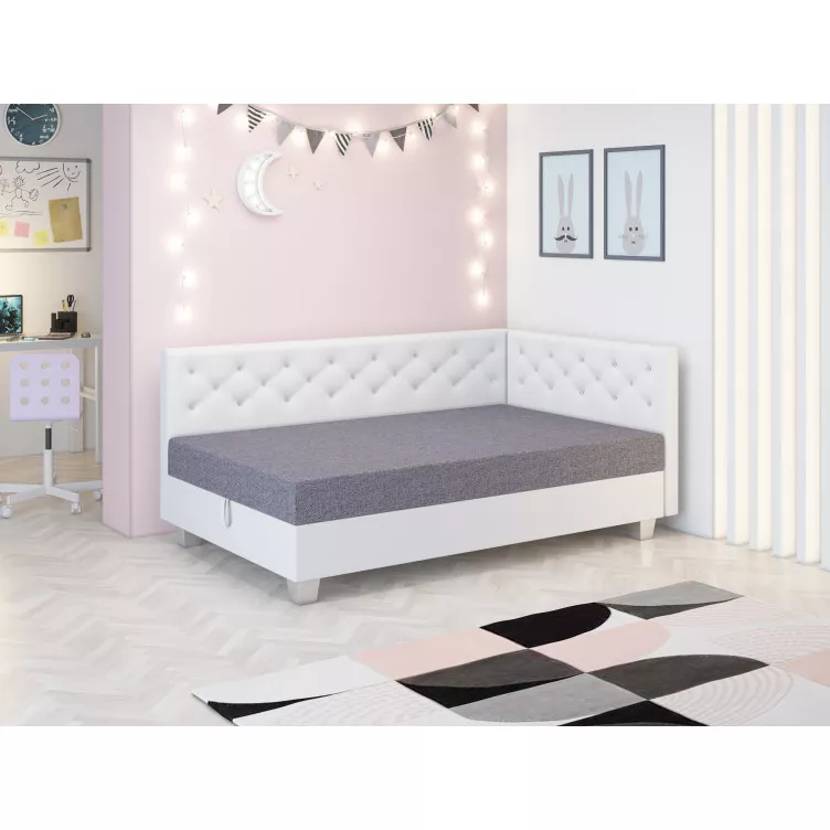 Jednolůžková postel 110x195 FREDERIKA PLUS 1 - šedá / bílá