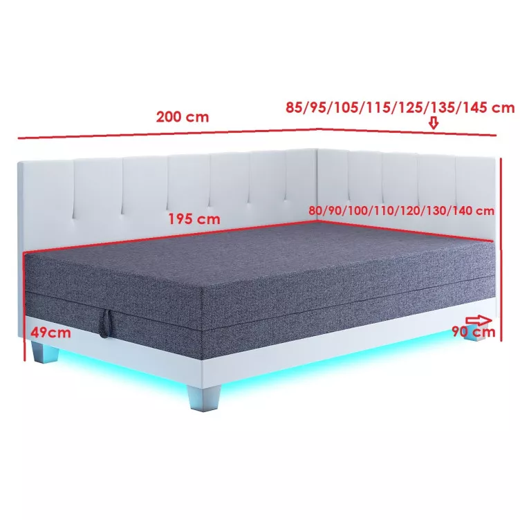 Čalouněná postel 130x195 INEJ PLUS 2 - šedá / bílá