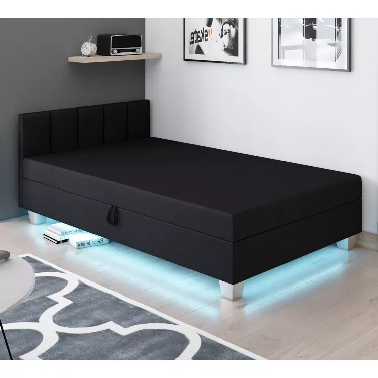 Jednolůžková postel PEGY 2 disponuje LED osvětlením, které je součástí postele a vytváří příjemnou atmosféru. Čalouněné čelo zamezí poškrábaní a zašpinění zdi. Úložný prostor slouží jako úschovna na ložní prádlo.