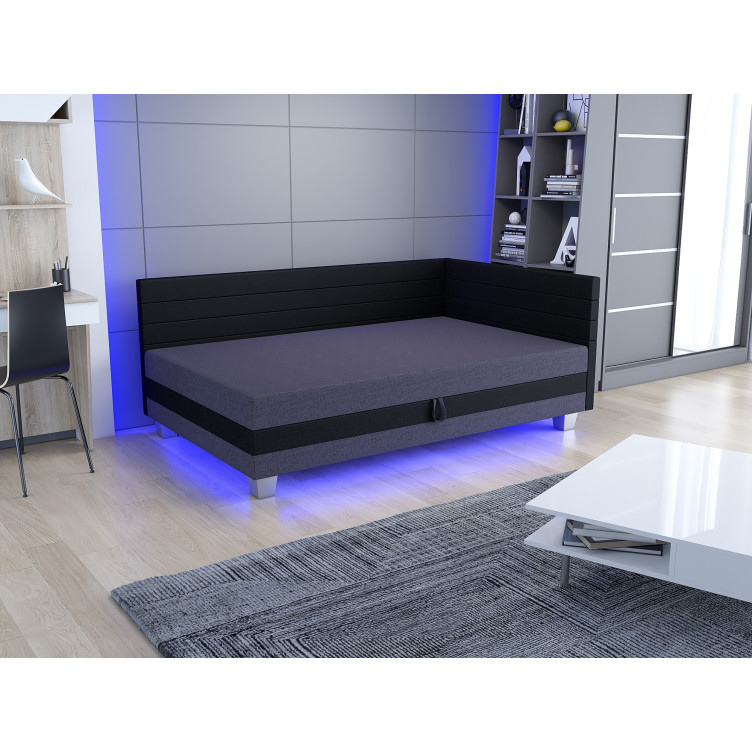 Jednolůžková postel PEGY 1 disponuje LED osvětlením, které je součástí postele a vytváří příjemnou atmosféru. Čalouněné čelo zamezí poškrábaní a zašpinění zdi. Úložný prostor slouží jako úschovna na ložní prádlo.
