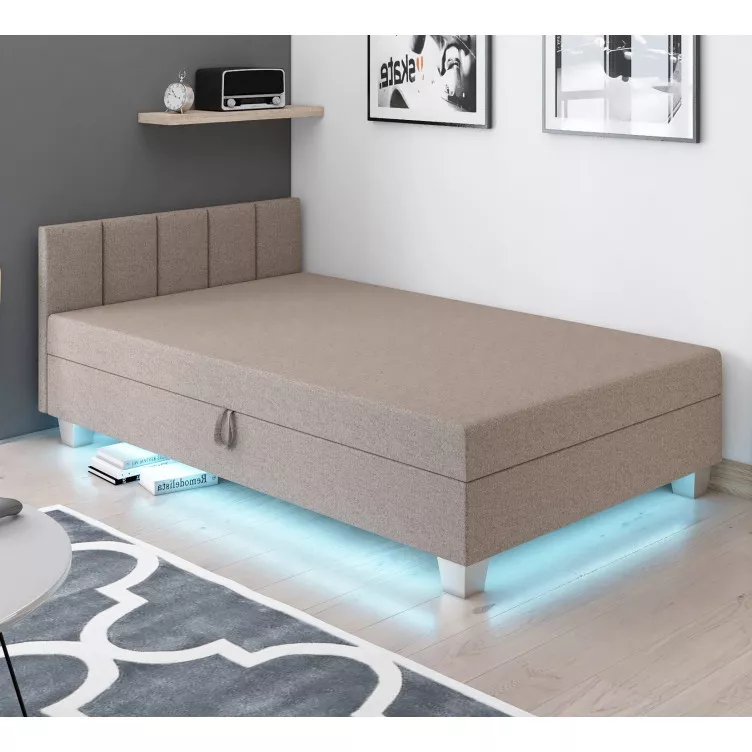 Jednolůžková postel PEGY 1 disponuje LED osvětlením, které je součástí postele a vytváří příjemnou atmosféru. Čalouněné čelo zamezí poškrábaní a zašpinění zdi. Úložný prostor slouží jako úschovna na ložní prádlo.