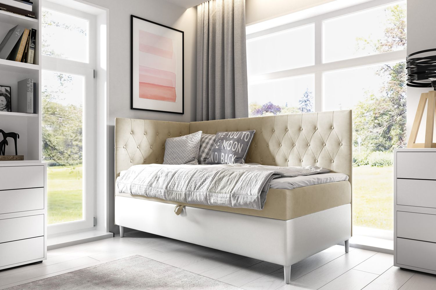 Jednolůžková postel BEATRIS PLUS 2 poslouží v pokoji pro hosty, hotelovém, studentském či dětském pokoji. Disponuje úložným prostorem umístěným pod vyklápěcím roštem. Čalouněné čelo nabízí pohodlí při čtení knih nebo sledování televize.