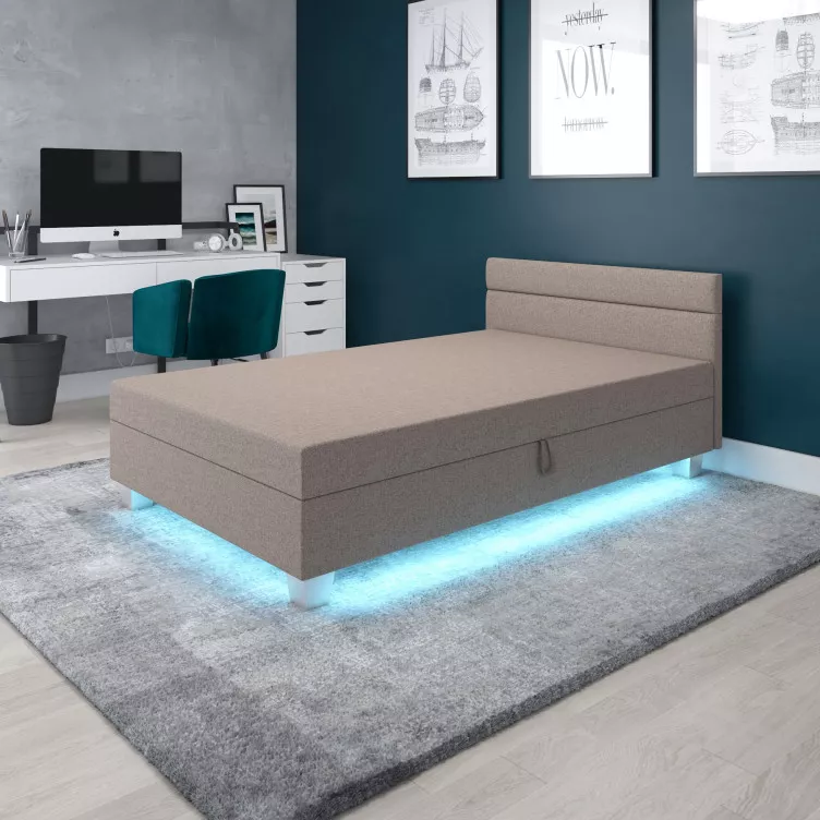 Jednolůžková čalouněná postel GITA 1 vám zajistí pohodlný spánek a vytvoří příjemnou atmosféru díky LED osvětlení. Prošívané čelo plní dekorativní funkci a zároveň chrání stěnu před znečištěním. Nechybí ani praktický úložný prostor na lůžkoviny.