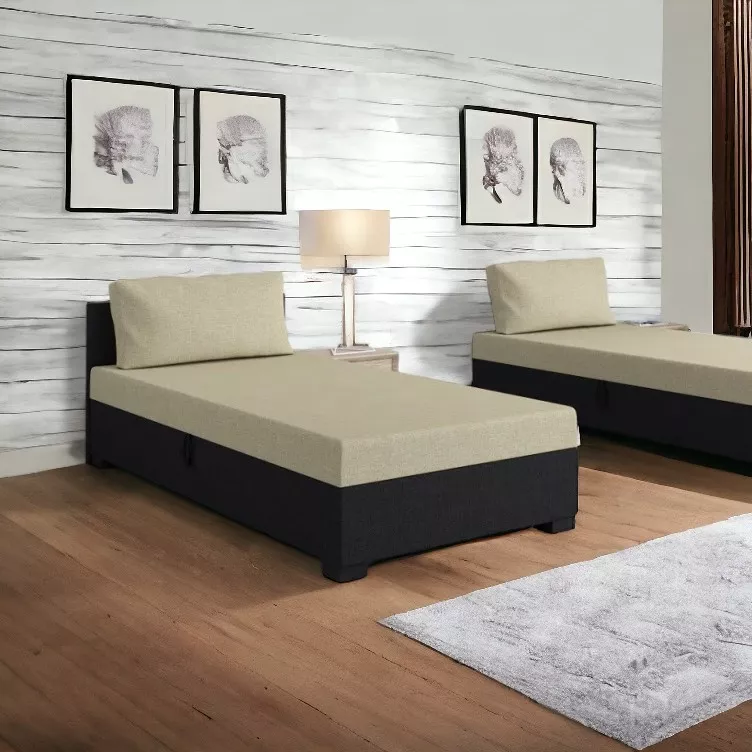 Čalouněná jednolůžková postel 120x195 SARAH 1 - světlá hnědá / černá