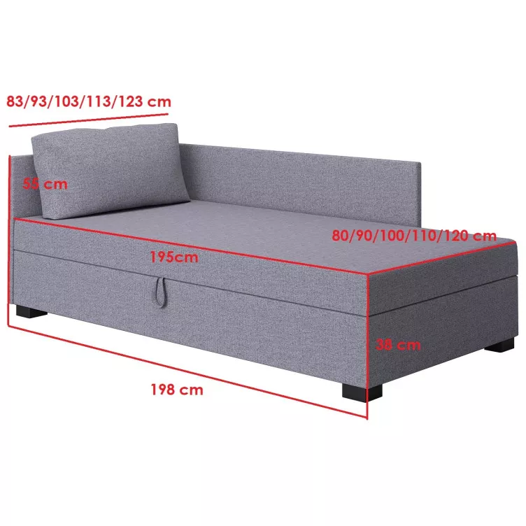 Jednolůžková postel SARAH PLUS 2 je vhodným místem ke spánku i relaxaci. Úložný prostor je umístěný pod vyklápěcím roštem. Čalouněné čelo zamezí poškrábaní a zašpinění zdi.