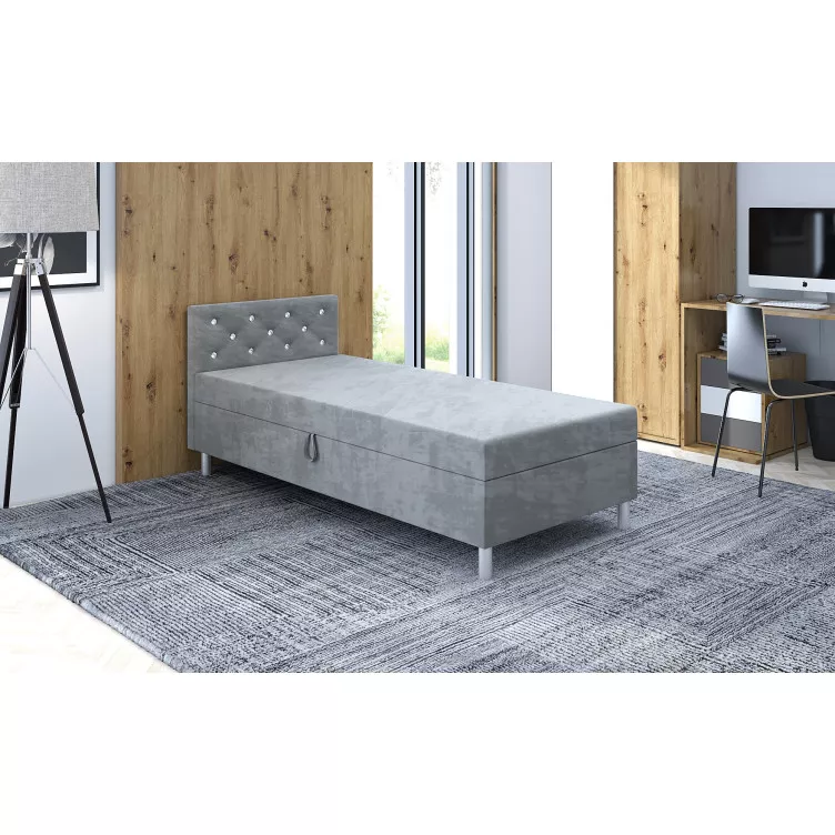 Jednolůžková postel PIXI 1 má jednoduchý, ale elegantní design. Čelo zdobené krystalky chrání stěnu před znečištěním. Postel má úložný prostor.
