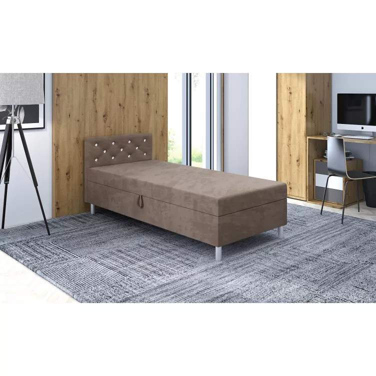 Jednolůžková postel PIXI 2 má jednoduchý, ale elegantní design. Čelo zdobené krystalky chrání stěnu před znečištěním. Postel má úložný prostor.
