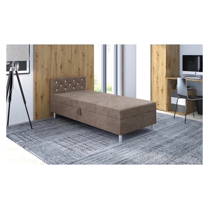 Jednolůžková postel PIXI 2 má jednoduchý, ale elegantní design. Čelo zdobené krystalky chrání stěnu před znečištěním. Postel má úložný prostor.