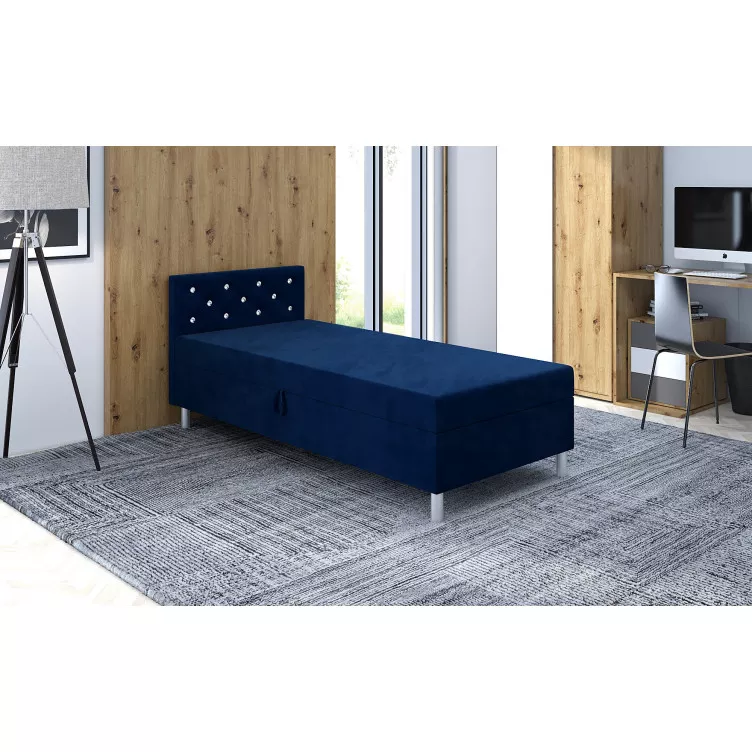 Jednolůžková postel PIXI 2 má jednoduchý, ale elegantní design. Čelo zdobené krystalky chrání stěnu před znečištěním. Postel má úložný prostor.