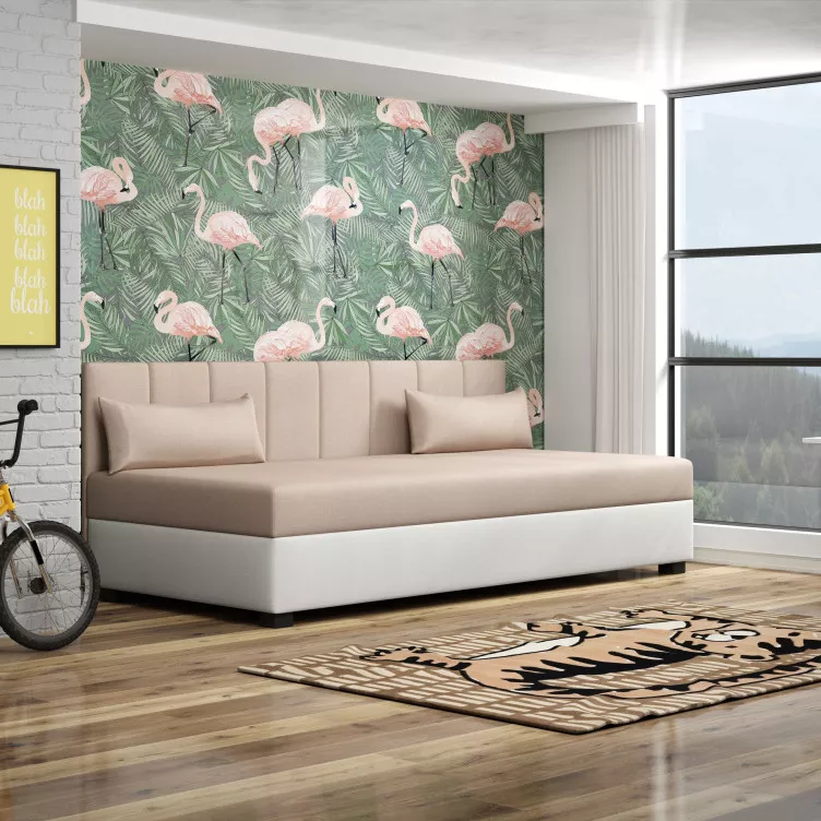 Jednolůžková čalouněná postel 110x195 ESTRADA 2 - světlá hnědá / krémová