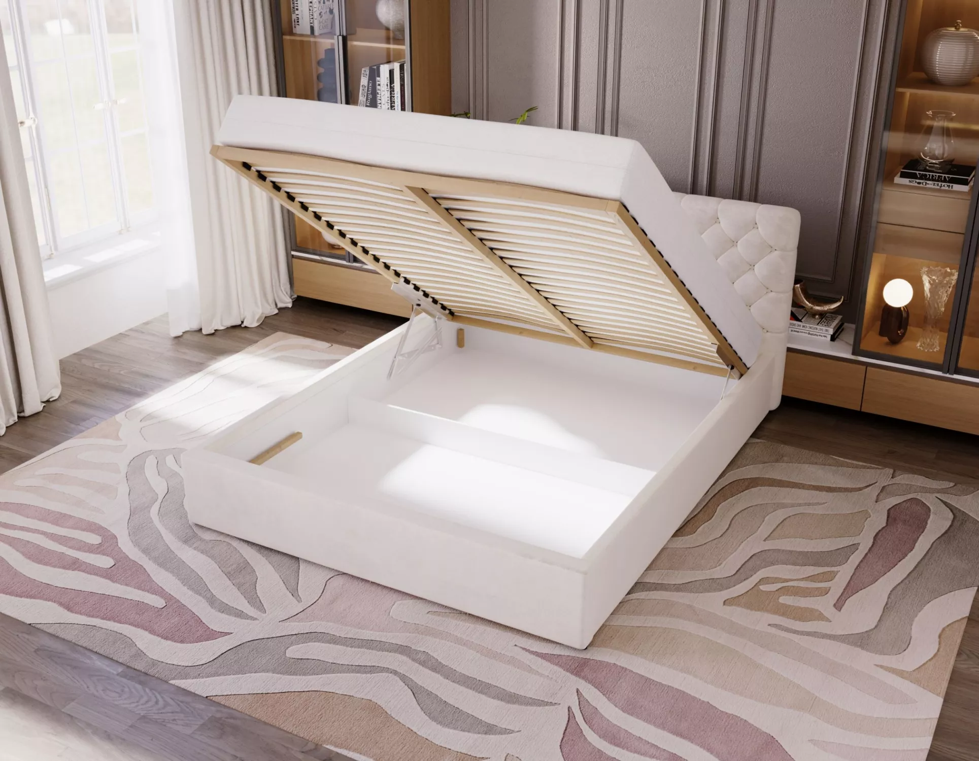 Pohodlná čalouněná postel 120x200 MARLISA SLIM 1 s úložným prostorem - béžová