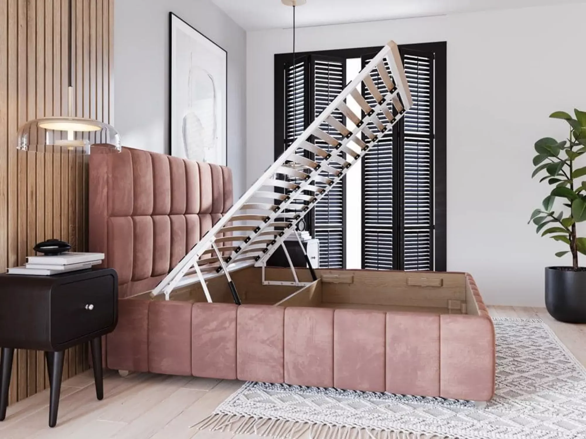 Moderní postel 120x200 ARLETE 2 s úložným prostorem vám zajistí pohodlný spánek a zkrášlí každý studentský pokoj. Čalouněné čelo zamezí poškrábání a zašpinění zdi.