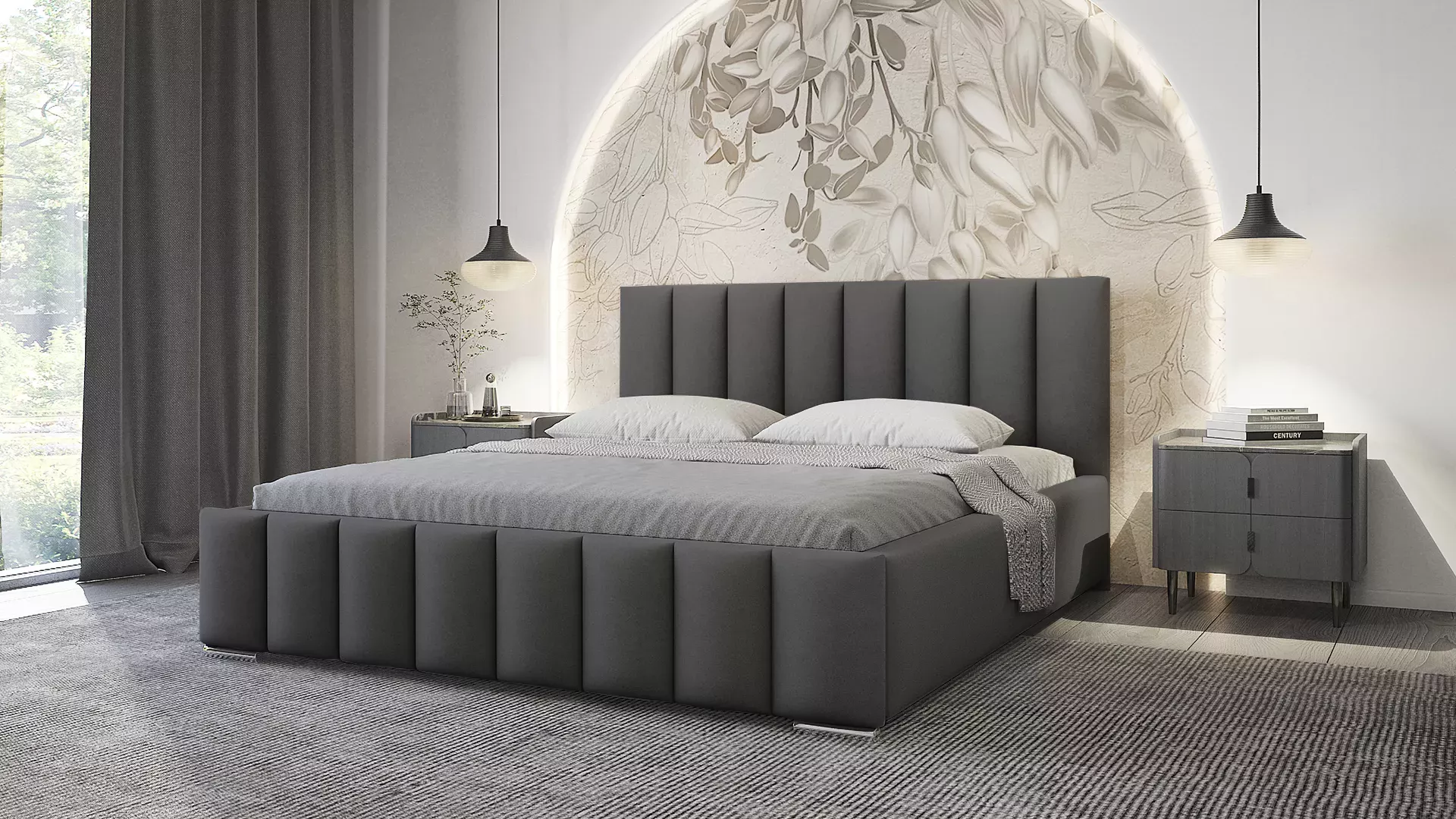 Elegantní čalouněná postel 120x200 MADALENA 2 s úložným prostorem - tmavě šedá