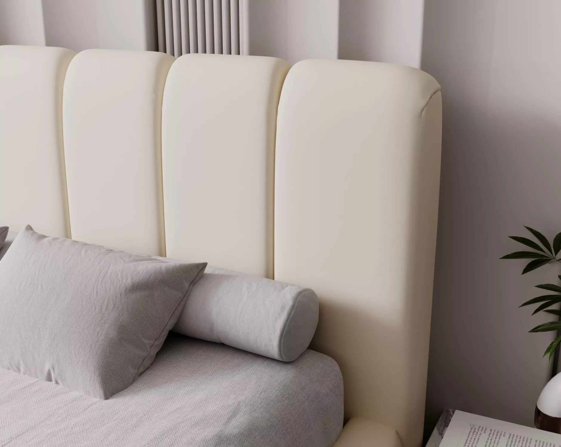 Čalouněná postel 120x200 FATUMATA uspokojí každého, kdo rád relaxuje v posteli. Čelo dodává posteli sofistikovaný vzhled, zatímco nízký rám působí minimalisticky a moderně.