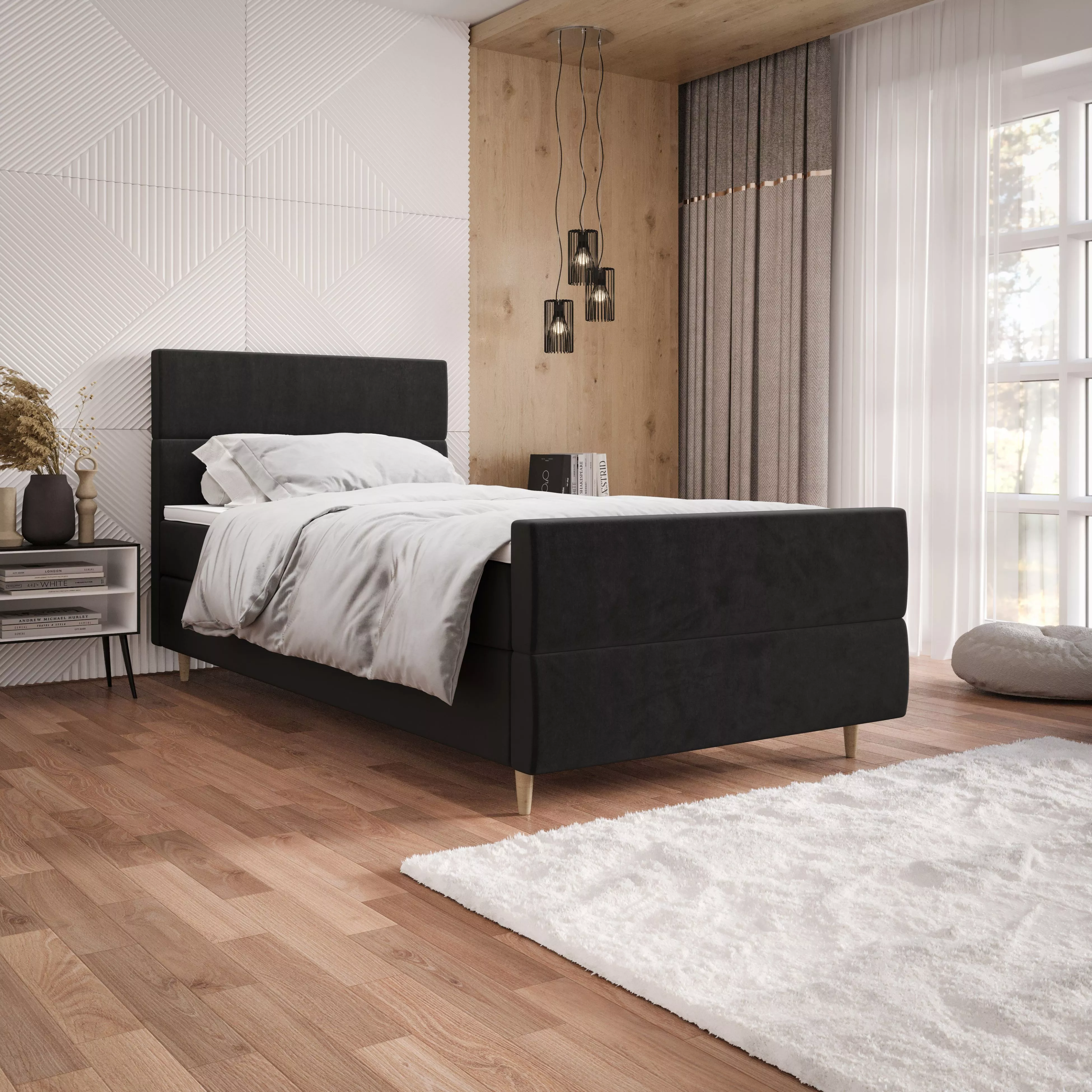Kontinentální jednolůžková postel 120x200 ANGELES PLUS COMFORT 1 se hodí do všech moderních studentských pokojů. Čalouněné čelo zamezí poškrábání a zašpinění zdi.