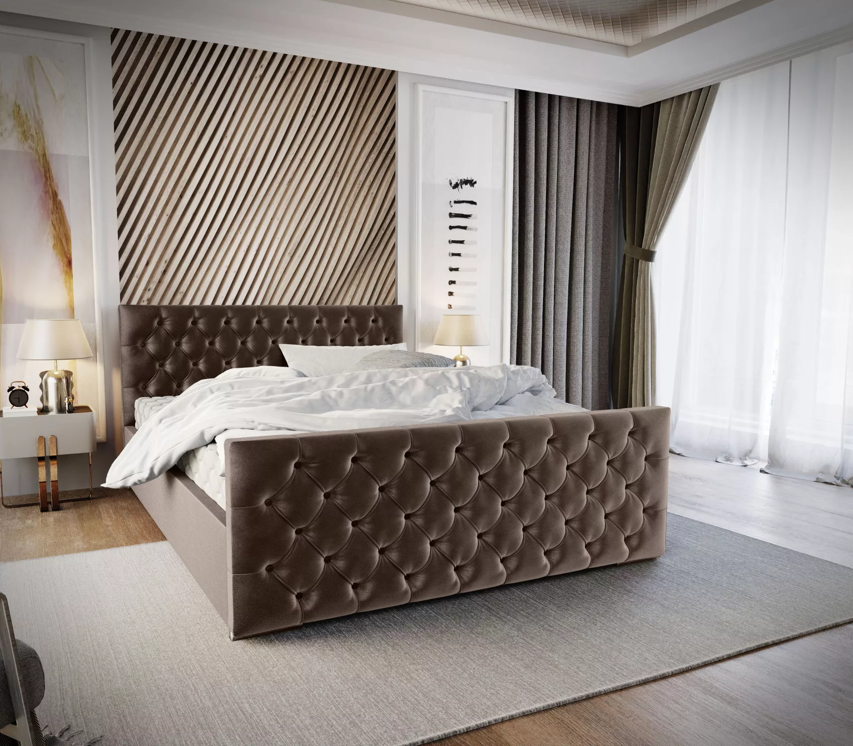 Elegantní čalouněná postel 90x200 ROSEMARIE 1 s úložným prostorem - tmavě hnědá