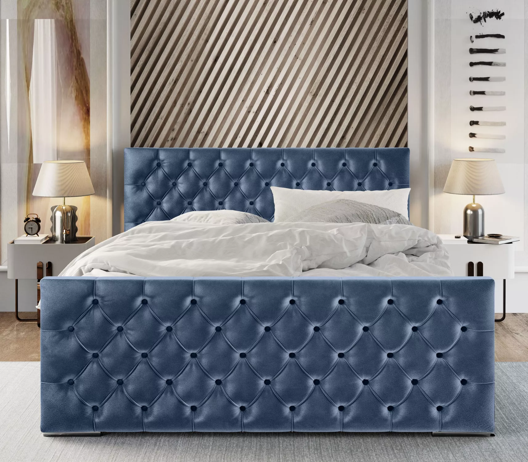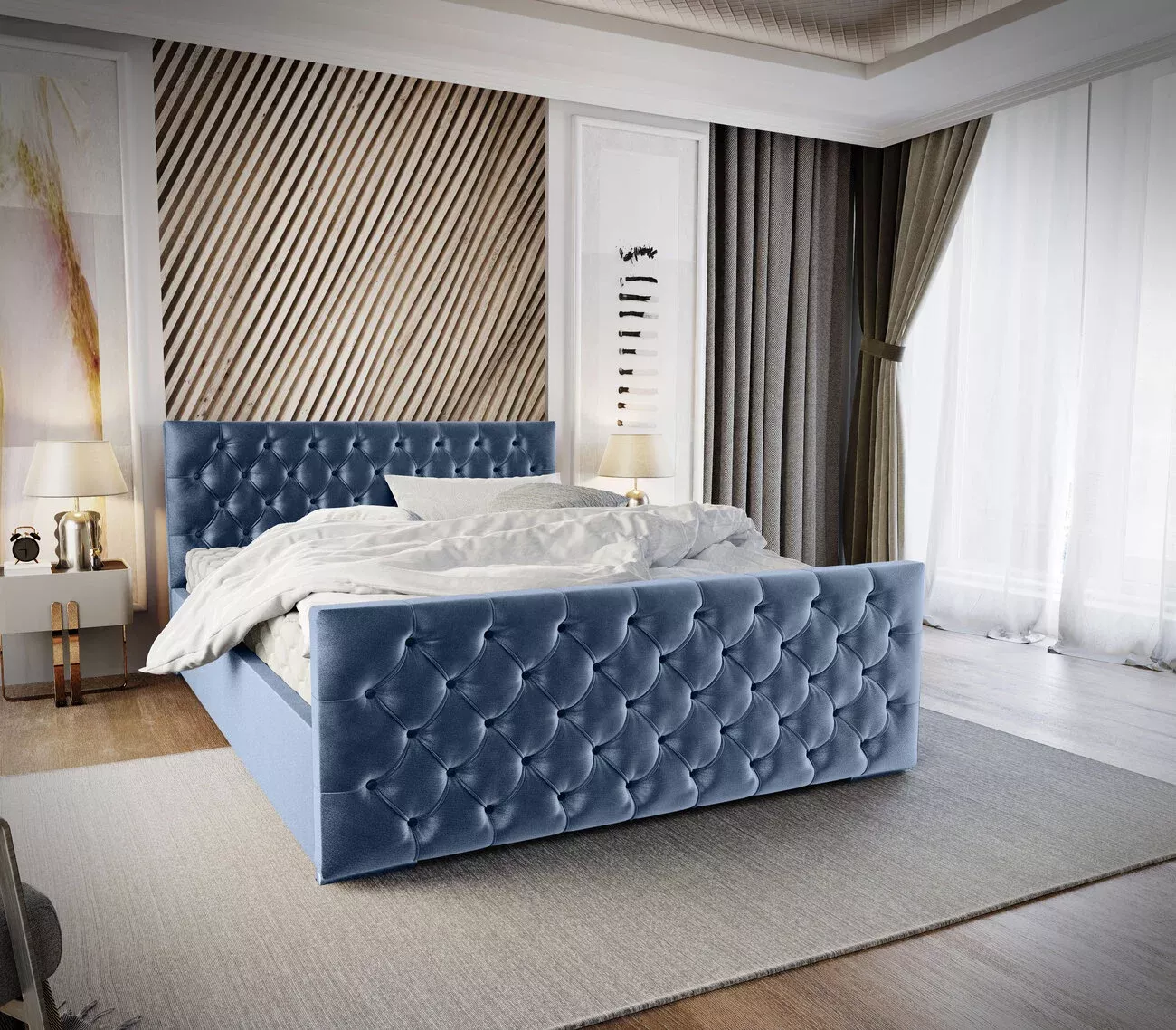 Elegantní čalouněná postel 120x200 ROSEMARIE 1 s úložným prostorem - modrá
