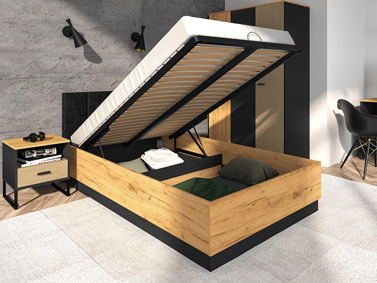 VÝPRODEJ - Jednolůžková postel 120x200 SABEL s úložným prostorem - černá / dub craft zlatý