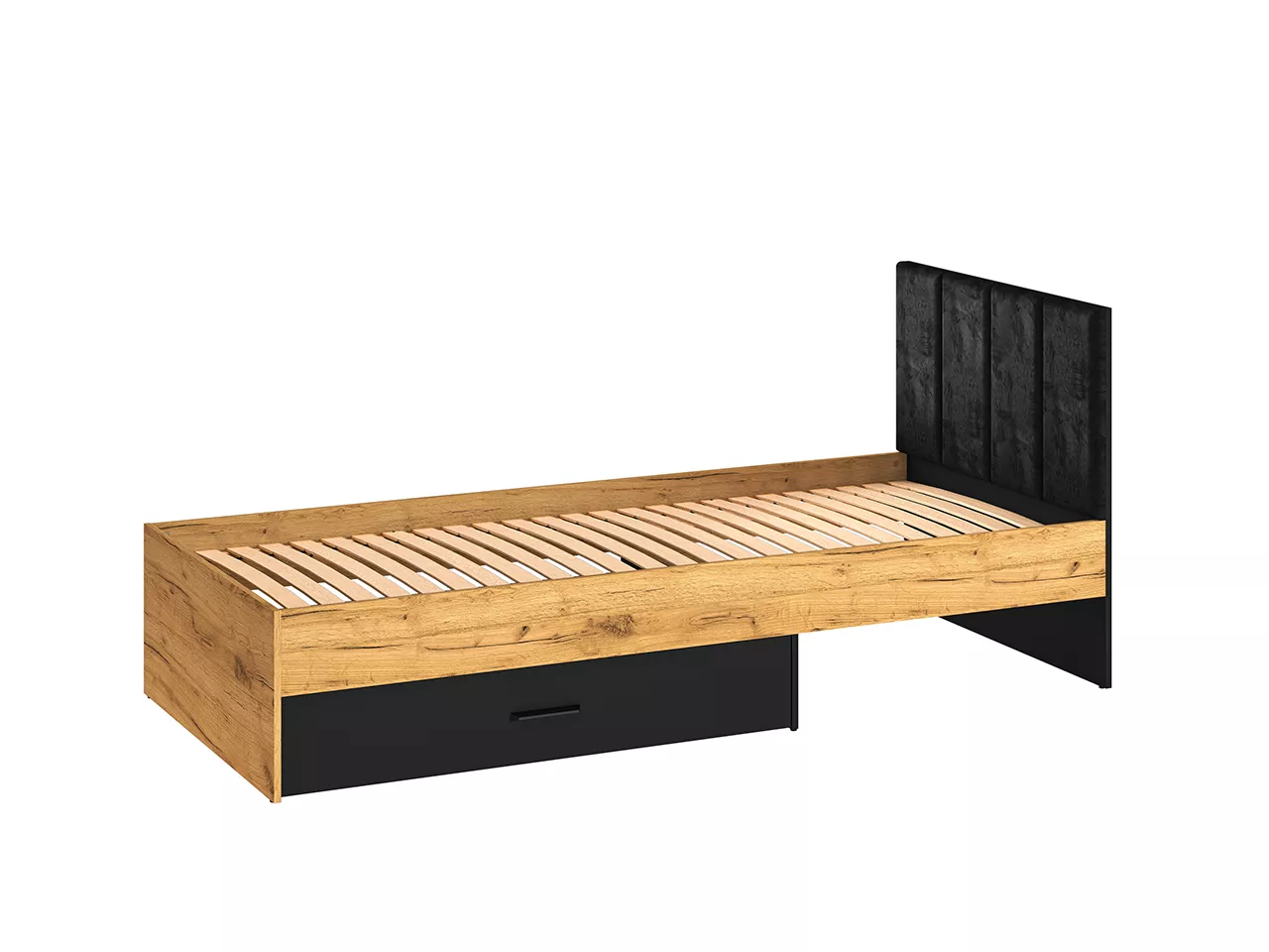 Jednolůžková postel 90x200 SABEL s úložným prostorem se hodí do všech moderních studentských pokojů. Součástí postele je úložný prostor v podobě zásuvky.