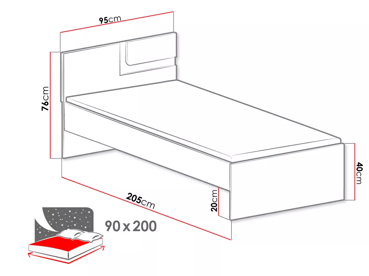 Jednolůžková postel 90x200 CHOCHO - antracitová / bílá