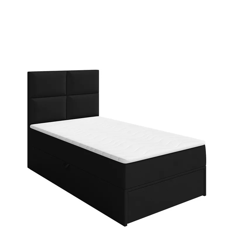 Jednolůžková boxspringová postel 90x200 LUGAU - černá ekokůže, pravé provedení