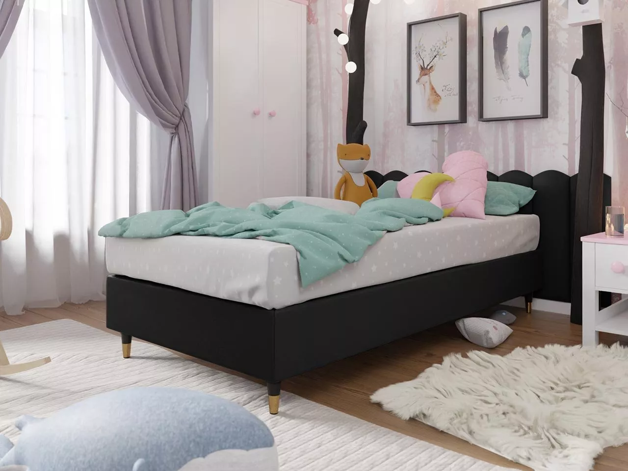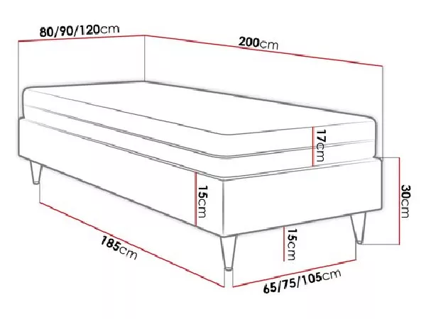 Jednolůžková čalouněná postel NECHLIN 5 je vhodná pro použití do dětského i studentského pokoje. Je vybavena spací plochou o rozloze 90x200 cm. Pružinová matrace poskytuje komfortní podmínky pro kvalitní spánek, navíc je vybavena pratelným potahem na zip. Charakteristickými znaky jednolůžka jsou pozlacené vysoké nohy, které dodávají posteli vysokou stabilitu.