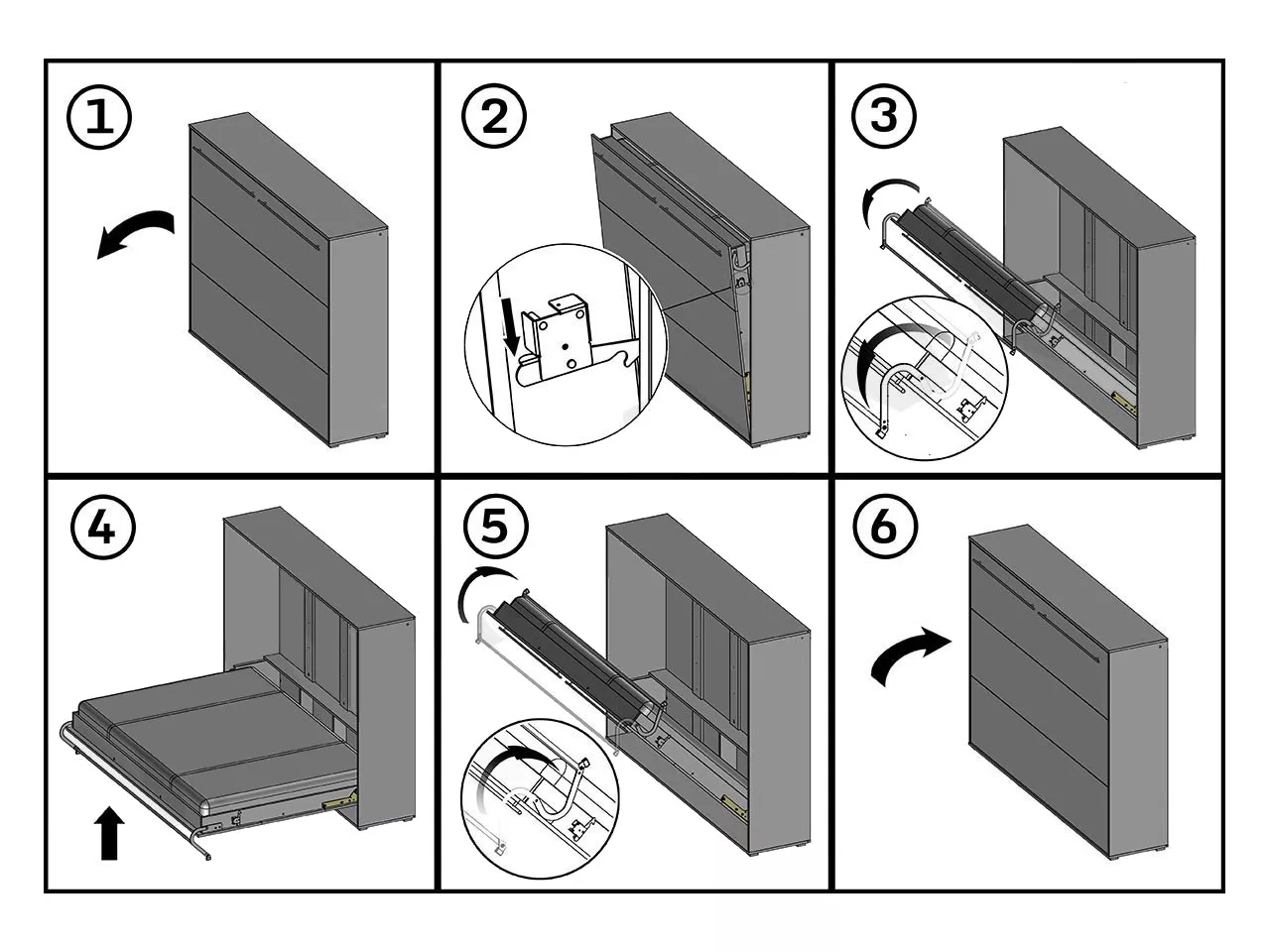 Vertikální sklápěcí manželská postel CELENA 1 je kvalitním ložnicovým vybavením v obývacím pokoji, pokoji pro mládež a studentské místnosti. V rozloženém stavu poskytuje optimální spací prostor o rozloze 90x200 cm. Postel byla speciálně vytvořena do malých místností, a proto je dostupná ve třech rozměrech, což vám dává ještě více příležitostí pro rozmístění nábytku ve vašem bytě. Díky chytrým řešením vyniká sklápěcí postel svým pohodlným způsobem rozkládání. Chcete-li připravit místo na spaní, stačí lehce zaklapnout klapku na boční straně, pak postel zatáhnout směrem k sobě a speciální pneumatický zvedák způsobí, že se postel ukrytá ve skříni začne pomalu spouštět k podlaze. Stejně snadné a bezhlučné je i její zavírání, takže při brzkém vstávání nebudete budit zbytek domácnosti uklízením lůžkovin. S ohledem na vaši bezpečnost má postel také zámek, který zabraňuje náhodnému otevření.