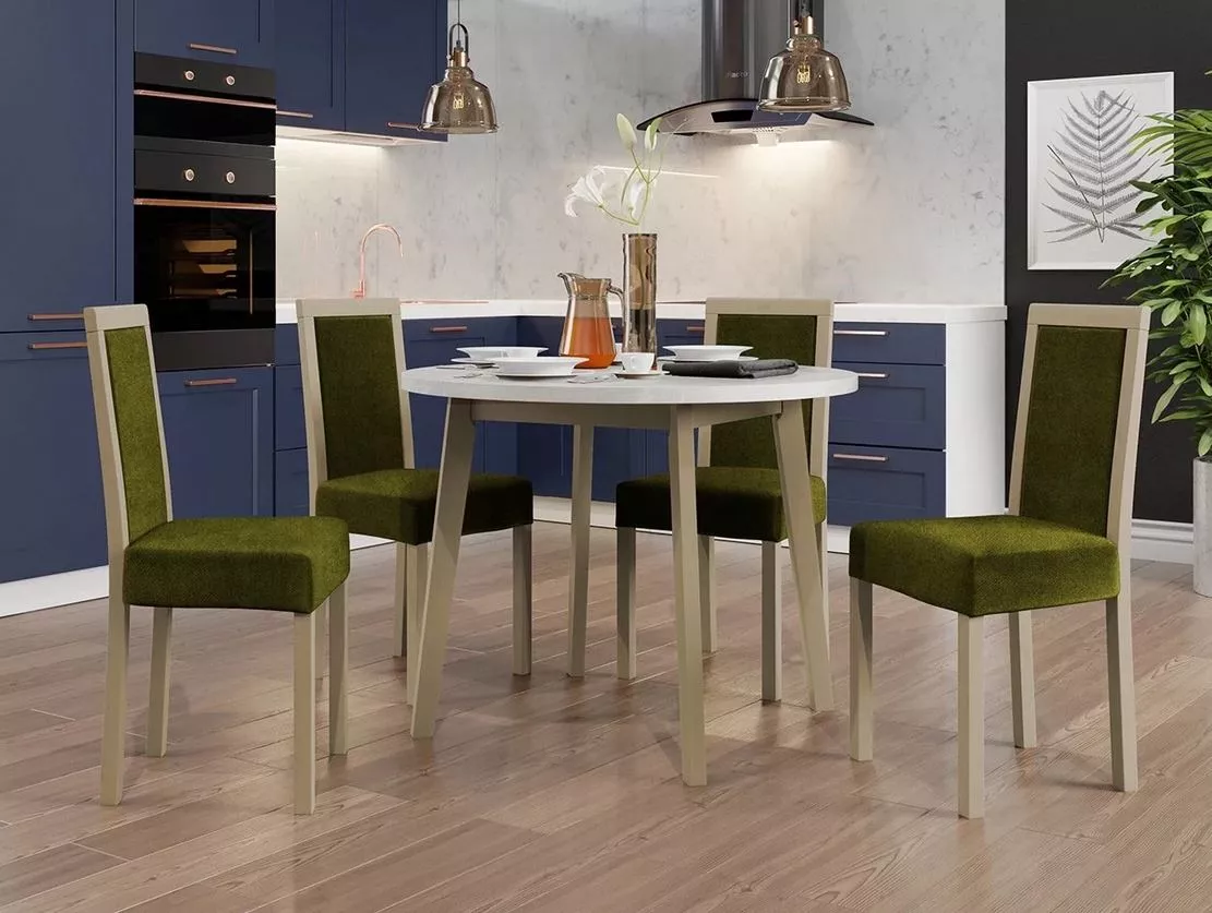 Sestava 4+1 do jídelny SALUSIA 1 - bílá / dub sonoma / tmavá olivová