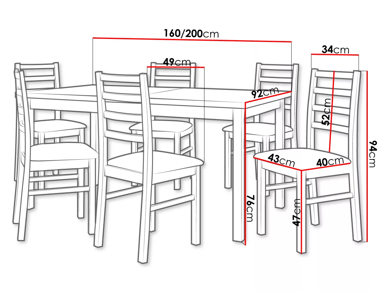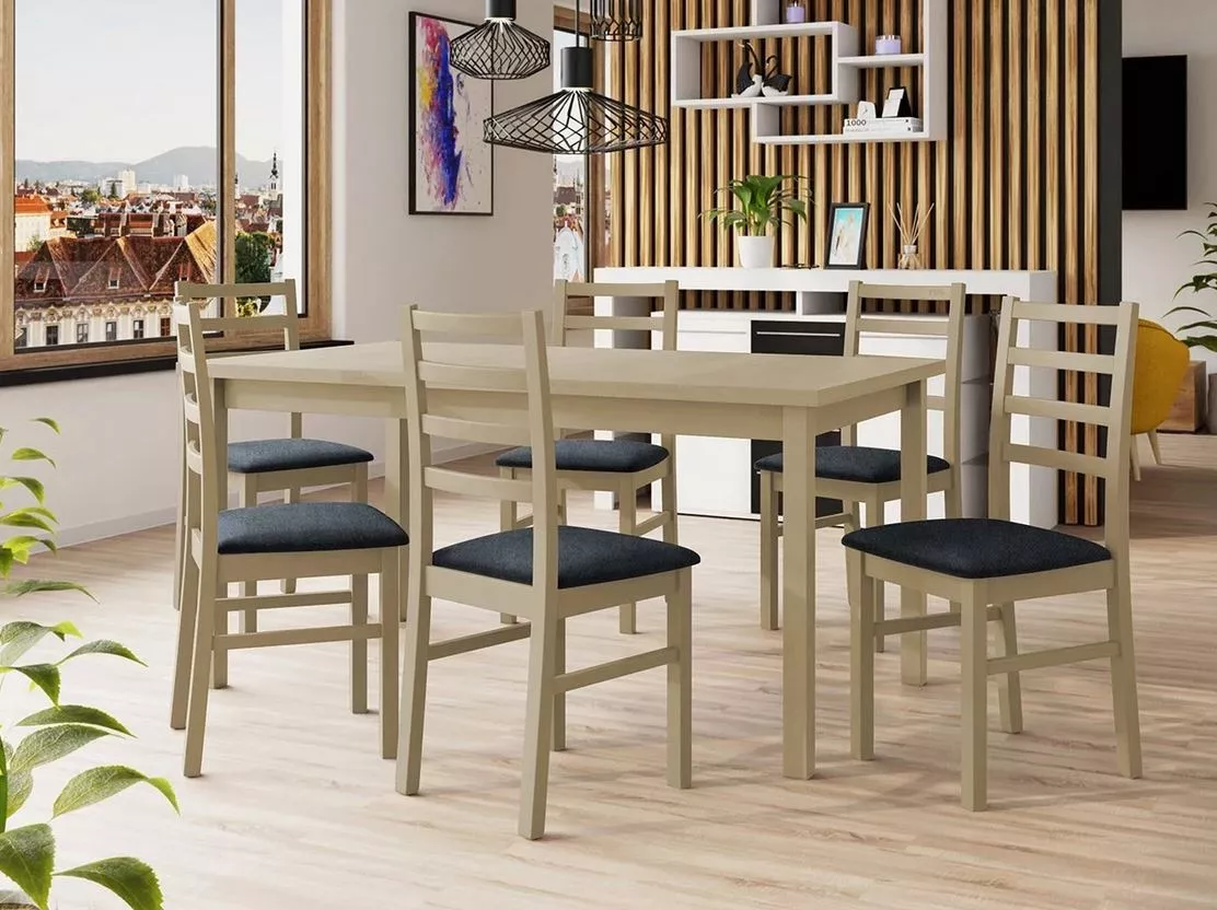 Dopřejte si maximální pohodlí při stolování s jídelní sestavou SALUSIA. Sestava se skládá ze 6 židlí s měkkými sedáky, které zaručují vysoký komfort při každodenním stolování i při dlouhých společenských setkáních. Jídelní stůl s masivními nohami lze snadno rozložit na šířku 200 cm, čímž nabídne dostatek místa pro až 7 osob.