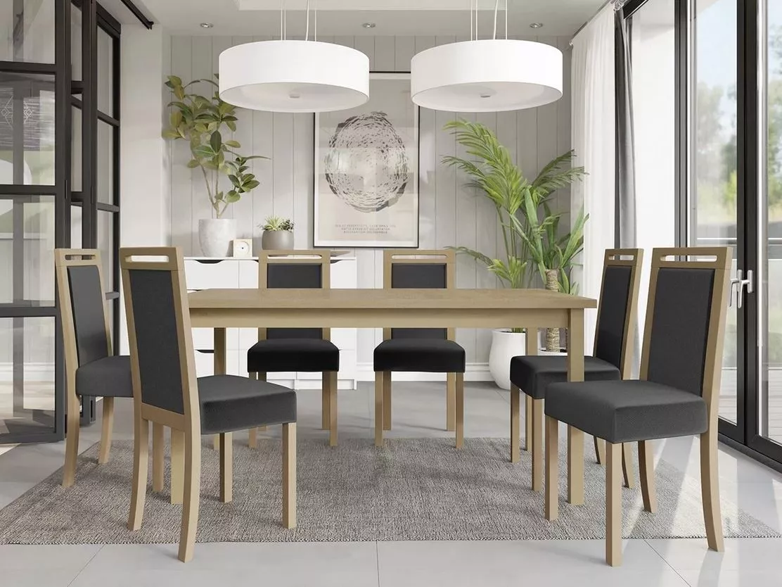 Jídelní sestava SALUSIA přináší do vaší jídelny kombinaci elegance a pohodlí. Čalouněné židle poskytují vysoký komfort při každodenním stolování i při dlouhých společenských setkáních. Stůl je rozkládací a po rozložení nabízí prostor až pro 7 osob.