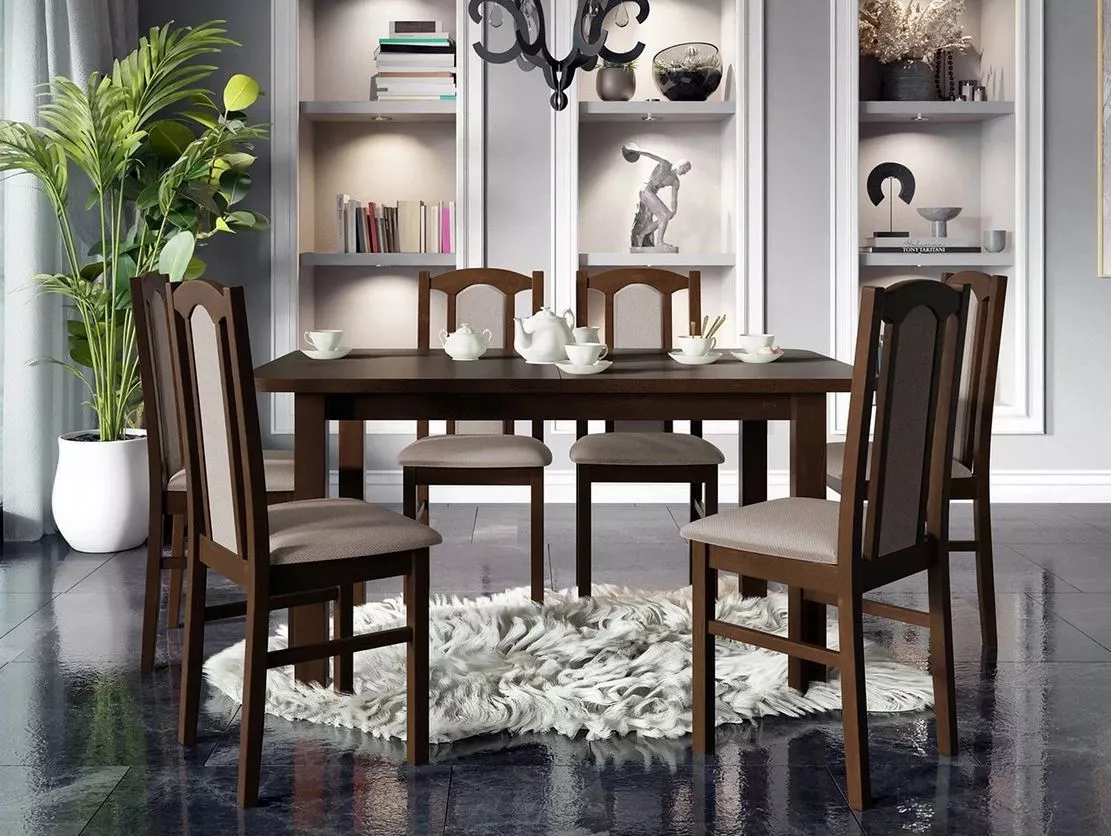 Jídelní sestava 6+1 s rozkládacím stolem SALUSIA 4 - ořech / béžová