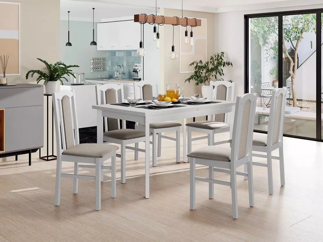 Sestava do jídelny 6+1 s rozkládacím stolem SALUSIA 5 - bílá / béžová