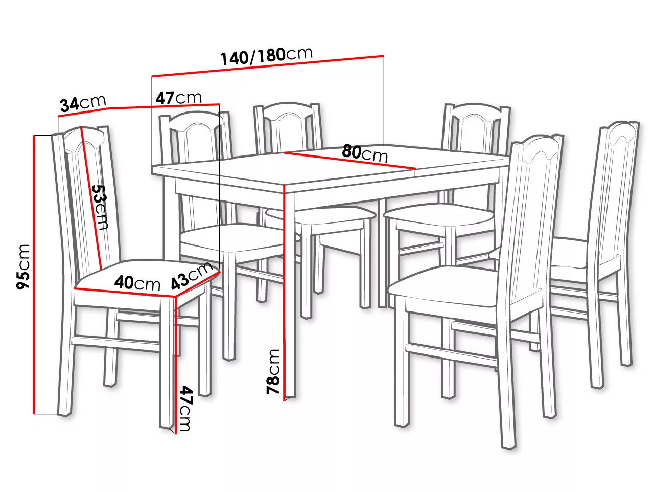 Zajistěte si pohodlí při každodenním stolování s jídelní sestavou SALUSIA. Stůl s pevnou konstrukcí lze snadno rozložit na šířku 180 cm, čímž vytvoří dostatek prostoru pro až 6 osob. Sestava obsahuje 6 židlí s pohodlným sedákem a opěradlem, které zajišťují maximální komfort při dlouhých společenských setkáních.
