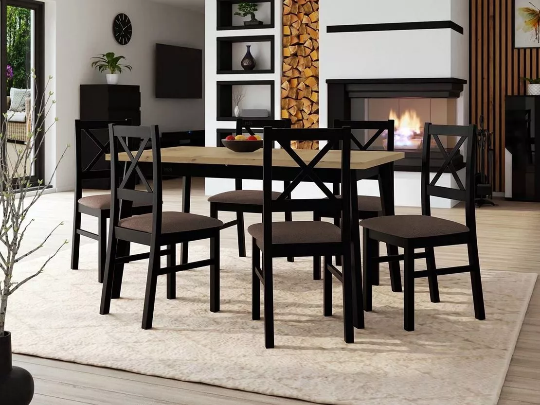 Rozkládací jídelní stůl 140 cm s 6 židlemi ADELBITE 3 - dub artisan / černý / hnědý 2