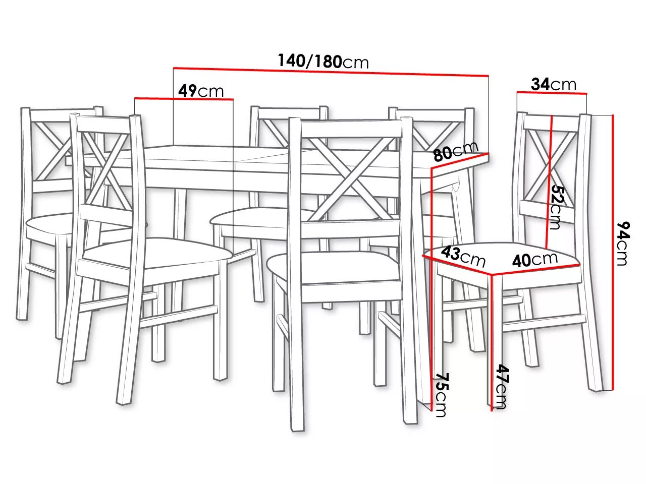 Přizpůsobte si svůj jídelní prostor přesně podle potřeby. Rozkládací stůl nabízí dostatek místa pro běžné i slavnostní chvíle, zatímco židle s měkkým sedákem se postarají o pohodlí. Masivní konstrukce zajistí pevnost a odolnost.