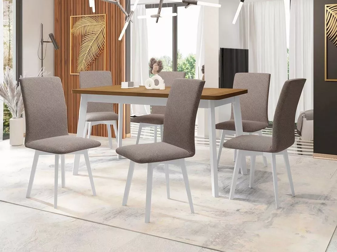 Moderní jídelní sestava 6+1 ADELBITE 10 - dub grandson / bílá / hnědá 1