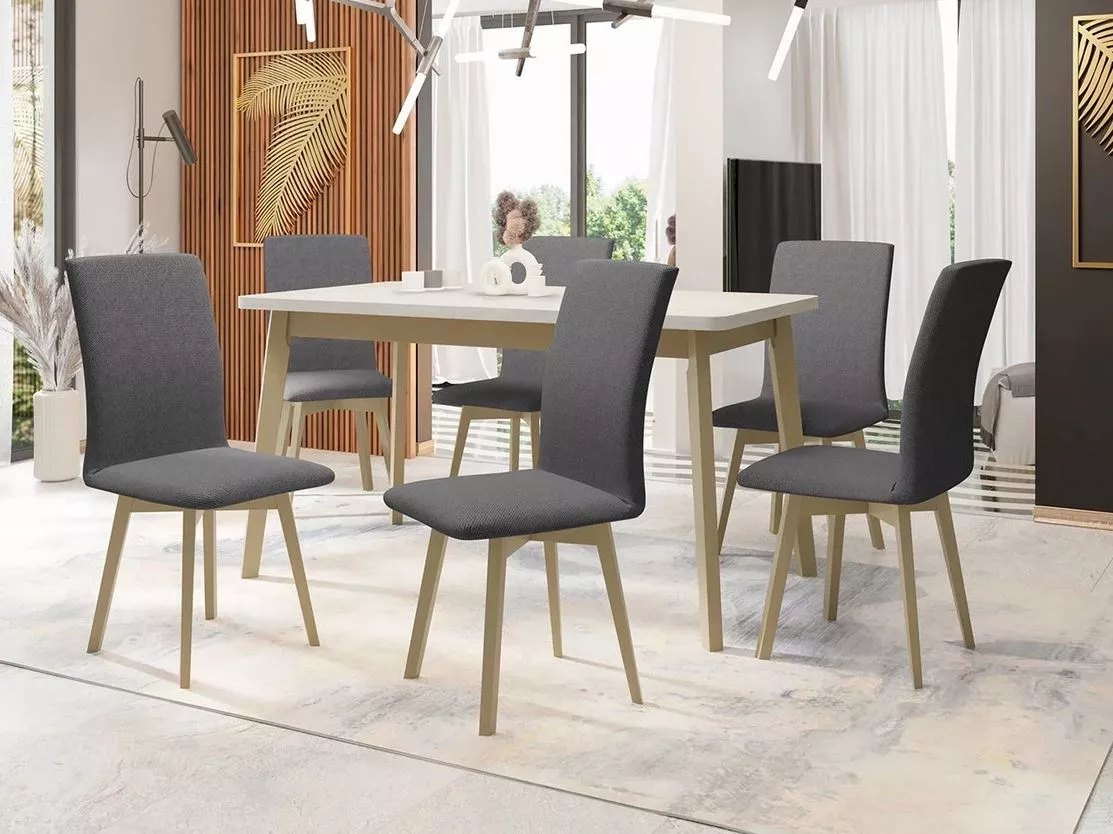 Moderní jídelní sestava 6+1 ADELBITE 10 - bílá / dub sonoma / ocelová šedá