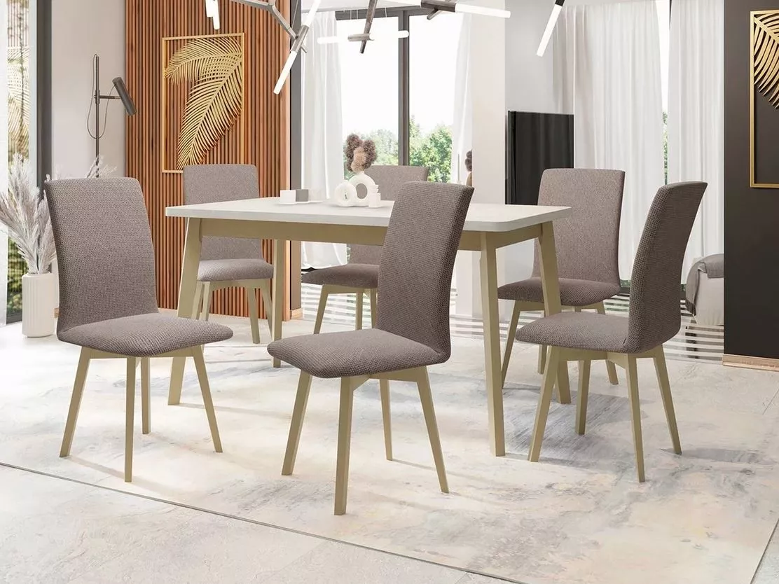 Moderní jídelní sestava 6+1 ADELBITE 10 - bílá / dub sonoma / hnědá 1