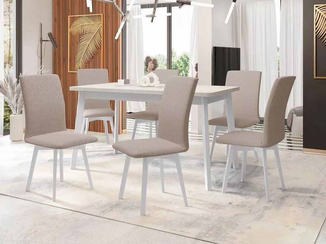 Moderní jídelní sestava 6+1 ADELBITE 10 - bílá / bílá / béžová