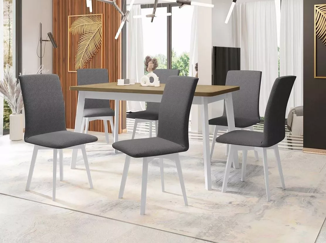 Užijte si společné chvíle bez kompromisů s jídelní sestavou ADELBITE. Rozkládací jídelní stůl vám zajistí dostatek místa pro každou příležitost, zatímco čalouněné židle s ergonomicky tvarovaným opěradlem se postarají o pohodlí. Masivní konstrukce zajišťuje dlouhou životnost a stabilitu.