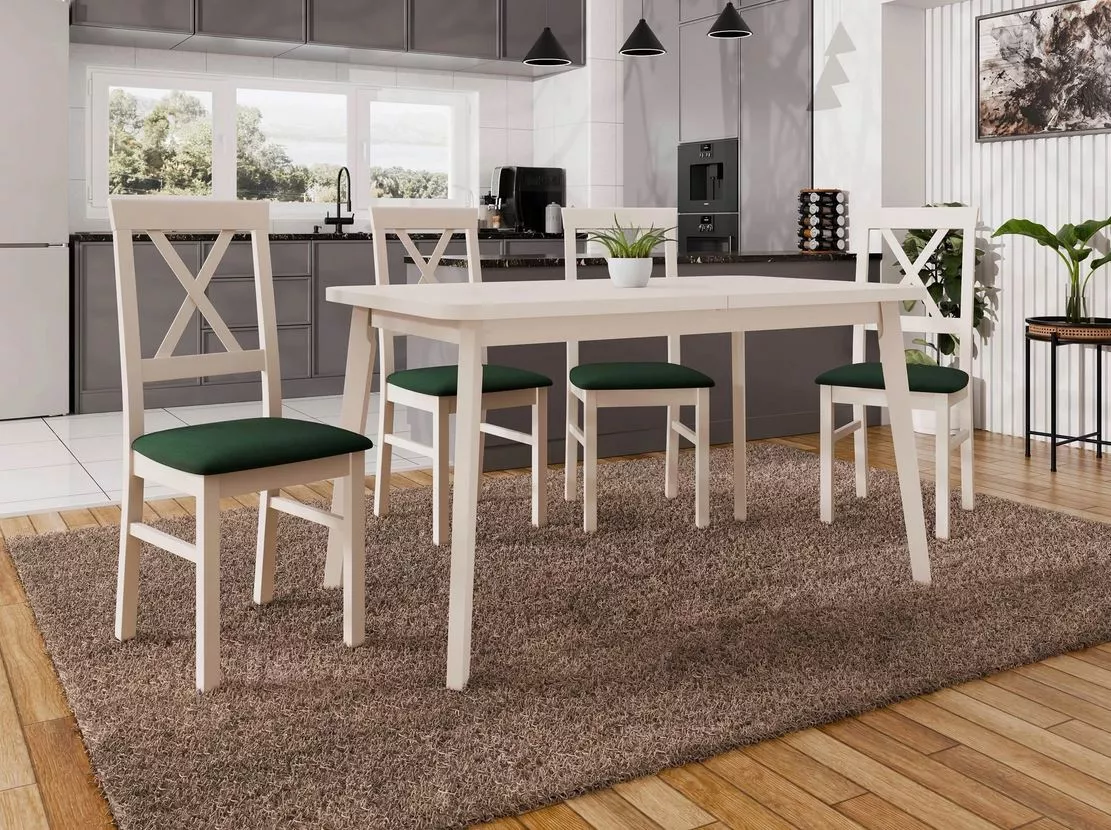Jídelní sestava s rozkládacím stolem 4+1 ADELBITE 12 - kašmír / zelená