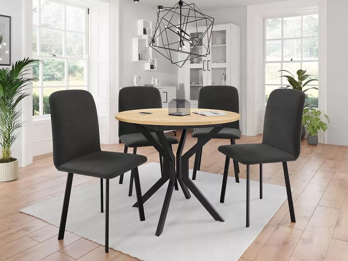 Rozkládací stůl se 4 židlemi SALPA 1 - dub kraft / černý / šedý