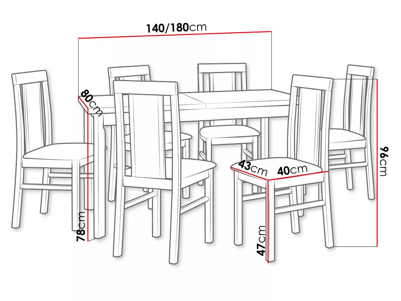 Jídelní sestava 6+1 HARDIN 4 podtrhne elegantní charakter vašeho interiéru. Set se skládá ze 6 jídelních židlí s čalouněným sedákem a opěradlem, které zaručují vysoký komfort. Jídelní stůl je vyroben z kvalitních materiálů zaručujících odolnost a stabilitu, navíc lze rozložit do šířky 180 cm.