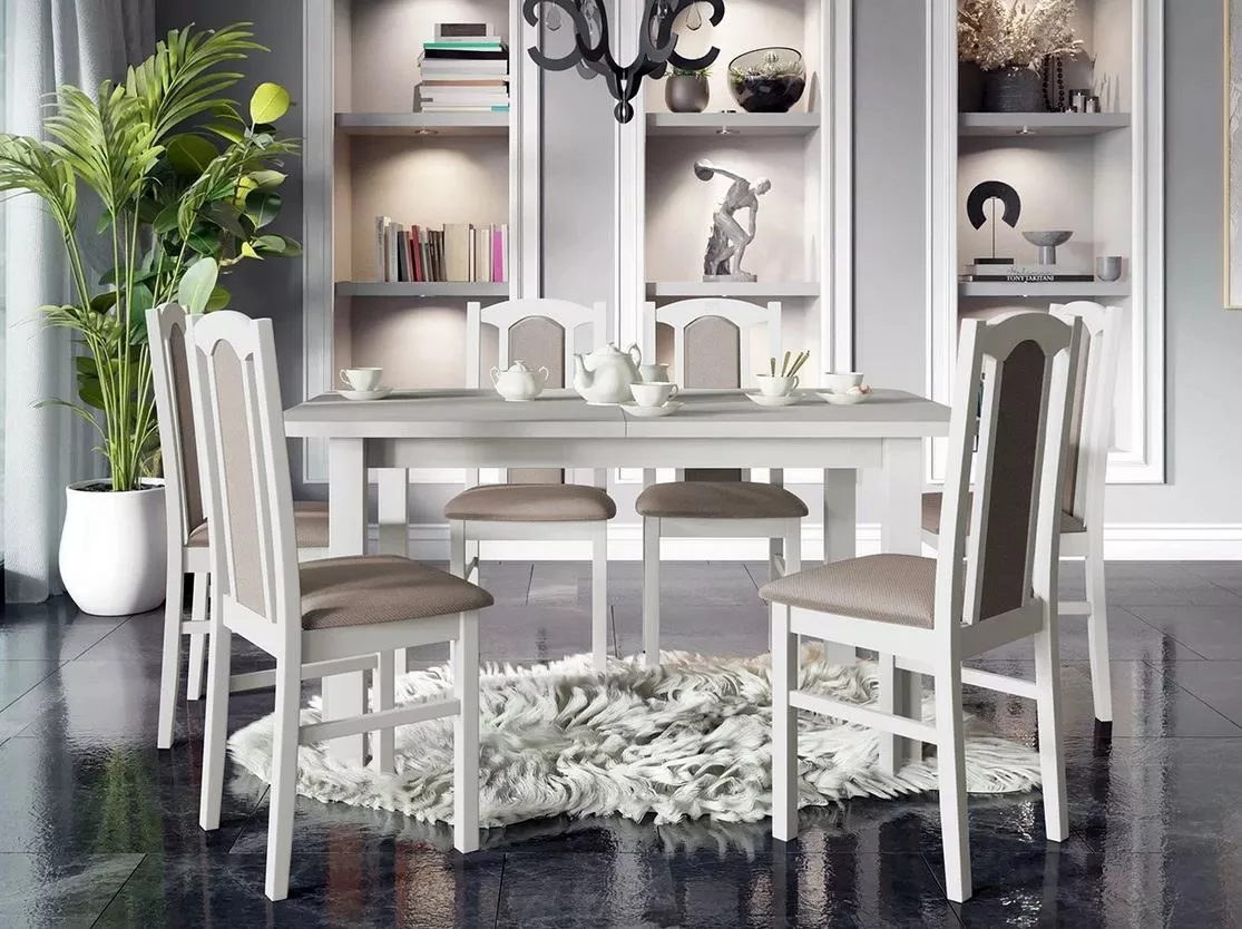 VÝPRODEJ - Jídelní sestava 6+1 s rozkládacím stolem SALUSIA 4 - bílá / béžová