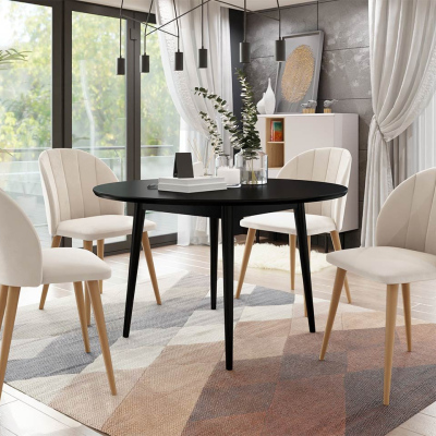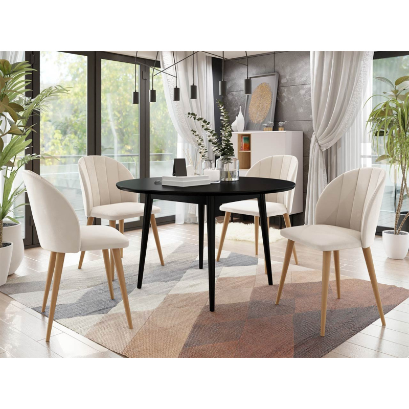 Jídelní stůl 120 cm se 4 židlemi NOWEN 1 - černý / přírodní dřevo / béžový