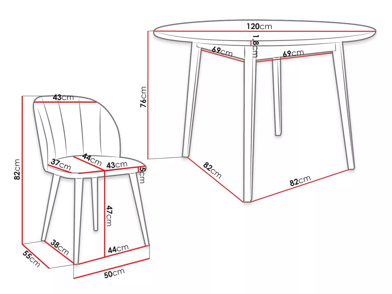 - kulatý jídelní stůl: 120/76/120 cm