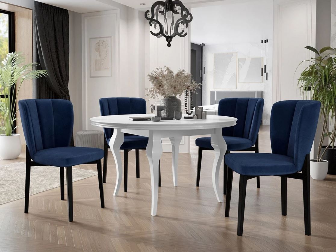 Jídelní sestavu NOWEN 1 tvoří kulatý stůl o průměru 120 cm a 4 elegantní židle s měkkým polstrováním. Masivní bukové nohy podtrhují skandinávský styl nábytku a postarají se o dostatečnou stabilitu.