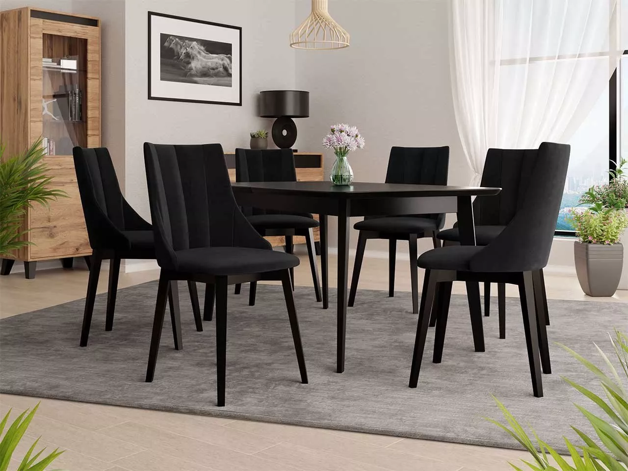 Rozkládací jídelní stůl se 6 židlemi NOWEN 2 - černý
